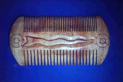 eine halbkreisförmige Griffplatte, die verziert aber auch unverziert sein kann. Die Kämme sind immer