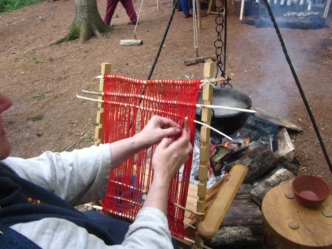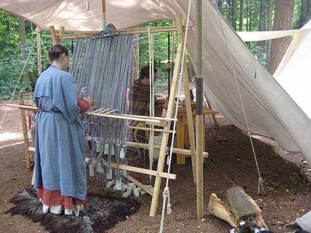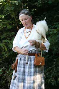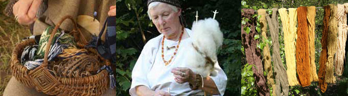 Hier zeigen die Frauen der Chasuari die unterschiedlichen Stationen der Wollverarbeitung - von der unbehandelten Rohwolle, über das Färben, der Herstellung von brettchengewebten Gürteln und Borten, Haarnetzen in Sprangtechnik bis hin zu den unterschiedlichen Kleidungsstücken. |